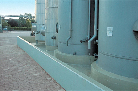 Wo mit wassergefährdenden Stoffen umgegangen wird, kommt für die Flächen und Fugen nur eine flüssigkeitsbeständige Beschichtung und Verfugung nach WHG § 19 I in Frage. Sowohl die Beschichtungen als auch die Fugen sind befahrbar und können rutschhemmend hergestellt werden.