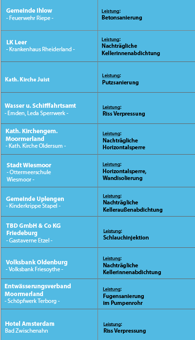 | Feuchte Mauern sind die häufigste Ursache für Schimmel abfallenden Putz, Schäden im Mauerwerksgefüge und Salzausblühungen. Sie gefährden die Gesundheit durch Sporen und Pilze, lassen Wände und Fassaden unansehnlich wirken und treiben die Heizkosten in die Höhe. Zusätzlich kann Feuchtigkeit im Mauerwerk zu Zersetzungsprozessen im Material führen, so das die Stabilität des Gebäudes beeinträchtigt wird.